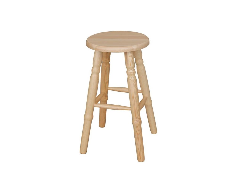 Barová stolička je skvelým doplnkom do kuchyne, jedálne alebo baru. Je vyrobená z masívneho borovicového dreva a ošetrená bezfarebným lakom. Tento stôl je k dispozícii v rôznych výškach, sedadlo je okrúhle a stojí na štyroch frézovaných nohách. Priemer sedáku je približne 30 cm.