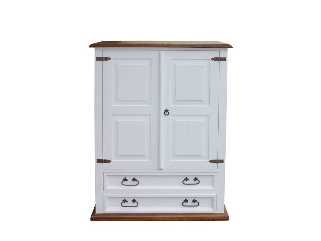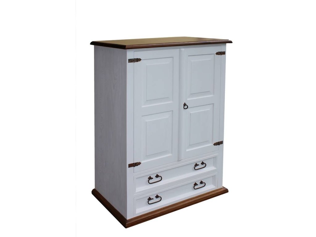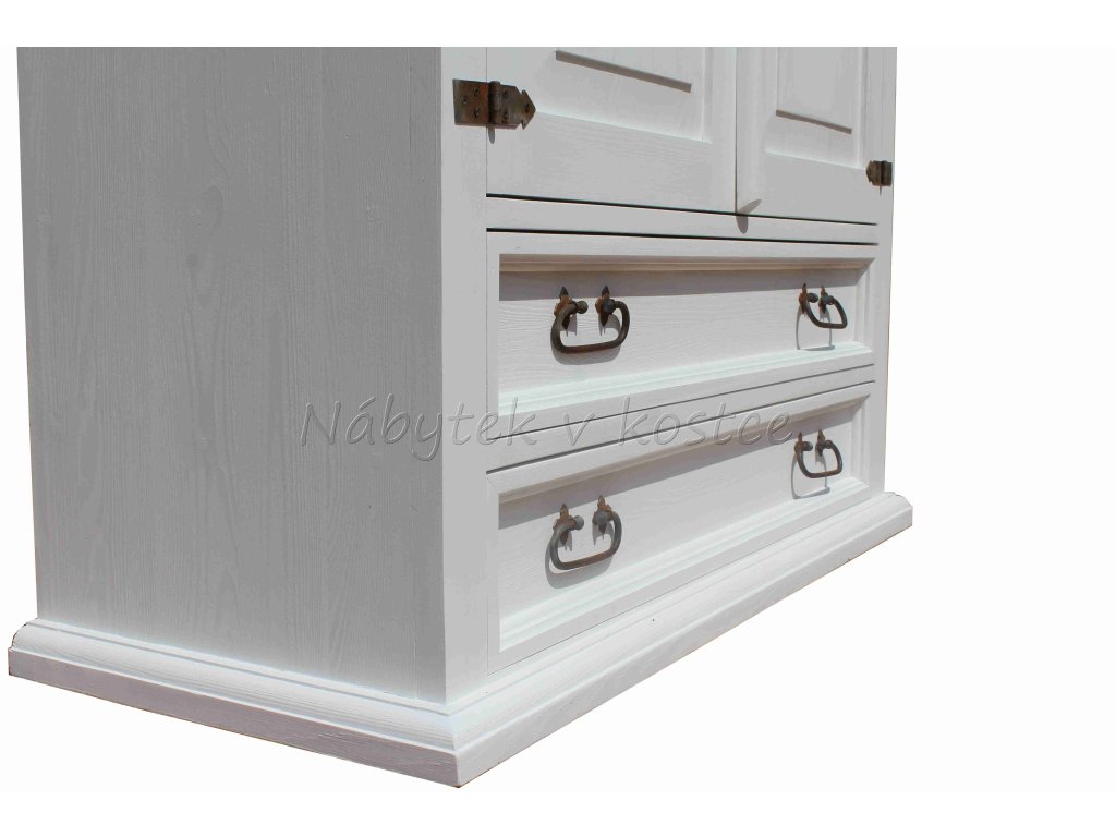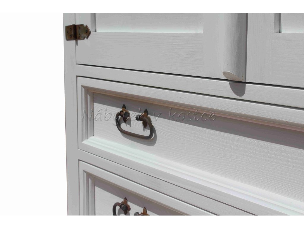 Komoda z masívneho dreva BIL67 je masívna policová skriňa so zásuvkami vyrobená z masívneho borovicového dreva (zadná strana je z drevenej dyhy). Komoda z masívneho dreva je ošetrená iba bielou vodou riediteľnou farbou alebo dvojfarebnou kombináciou (pozri vzorkovník). Z dreva sú vyrobené aj zásuvkové lišty a police. Pre jednoduchšiu údržbu odporúčame objednať nábytok s hnedou vrchnou doskou v lakovanom vyhotovení
