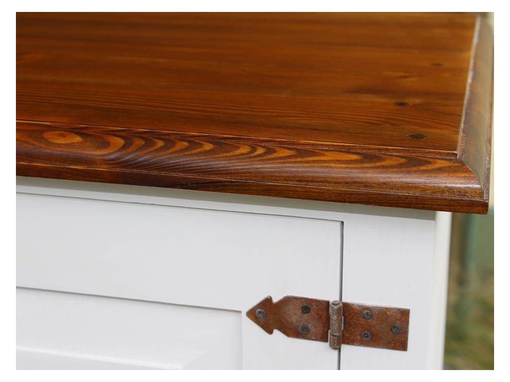 Rustikálna komoda SWEET HOME je vyrobená z masívneho borovicového dreva a je ošetrená iba bielou vodou riediteľnou farbou alebo dvojfarebnou kombináciou (pozri vzorkovník). Pre jednoduchšiu údržbu odporúčame objednať nábytok s hnedou vrchnou doskou v lakovanom vyhotovení.