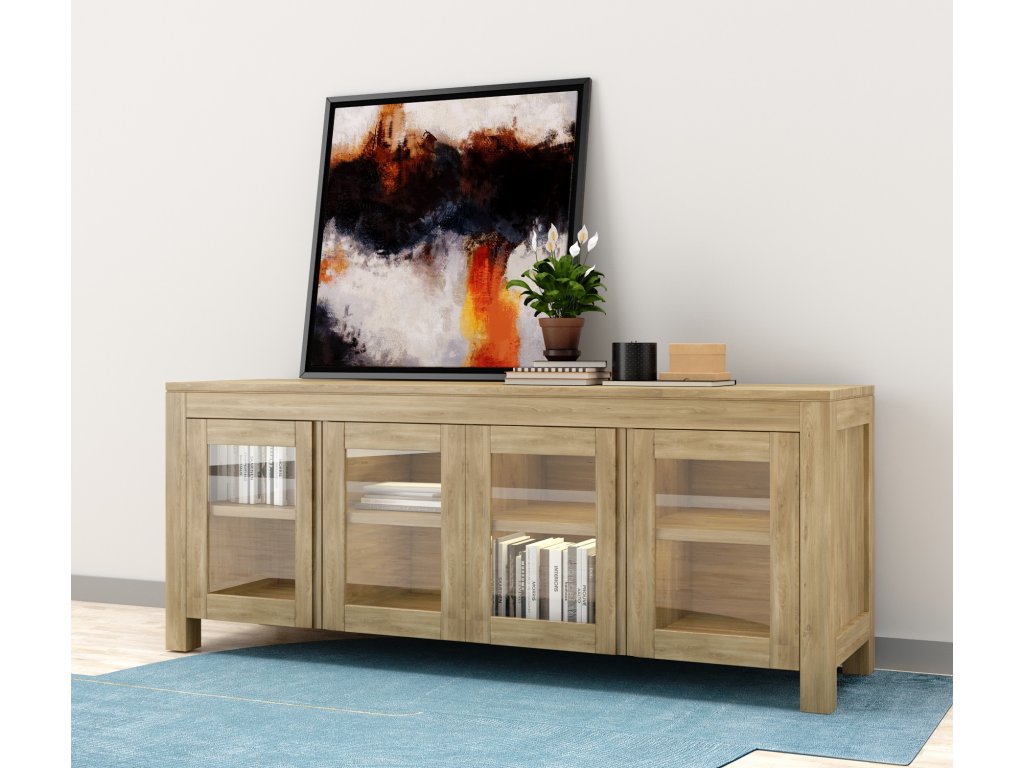 Za dverami sa nachádzajú policové priestory - dva výklenky a každý z nich má jednu policu. Dvierka komody môžu byť vyplnené priehľadným sklom, mliečnym sklom alebo drevom.