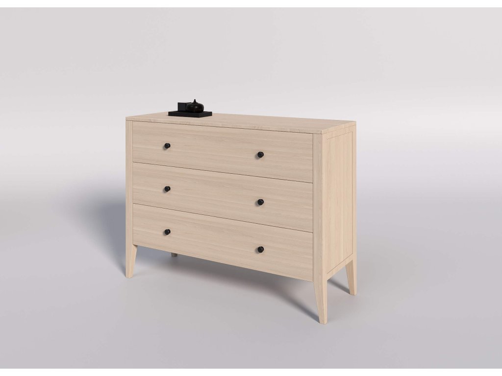 Masívna komoda ROMA je vyrobená z masívneho bukového dreva a ošetrená bezfarebným lakom, ktorý dodáva drevu krásnu kresbu. Celok dopĺňa 20 cm priestor pod komodou, ktorý uľahčuje údržbu a zaručuje, že sa pod ňu zmestí akýkoľvek robotický vysávač.