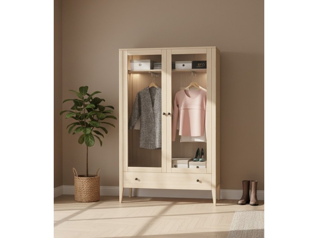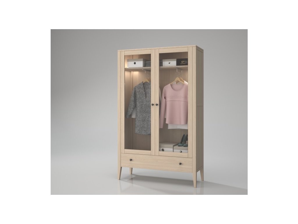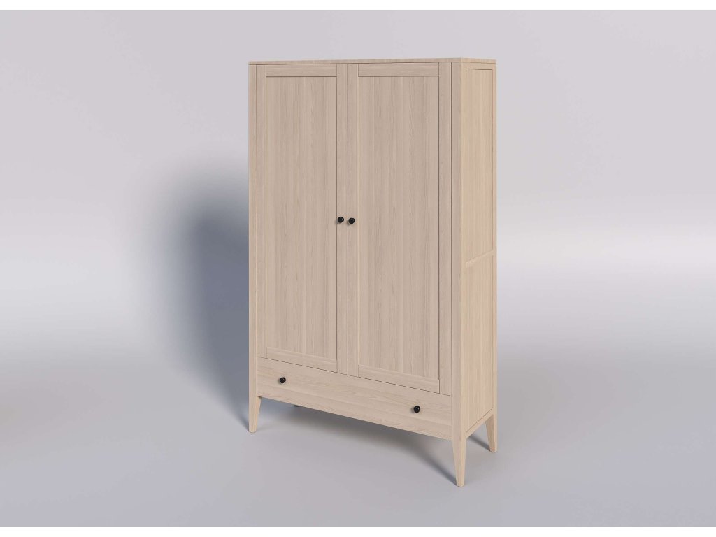 Masívna skriňa ROMA je vyrobená z masívneho tvrdého bukového dreva a ošetrená bezfarebným lakom, ktorý dáva vyniknúť krásnej kresbe dreva. Balenie dopĺňa voliteľné vnútorné osvetlenie a 20 cm priestor pod skrinkou, ktorý uľahčuje údržbu a zaručuje, že sa pod ňu zmestí akýkoľvek robotický vysávač. Šatníková skriňa ponúka 2 vešiaky a poličku na uloženie všetkého potrebného vrchného oblečenia.