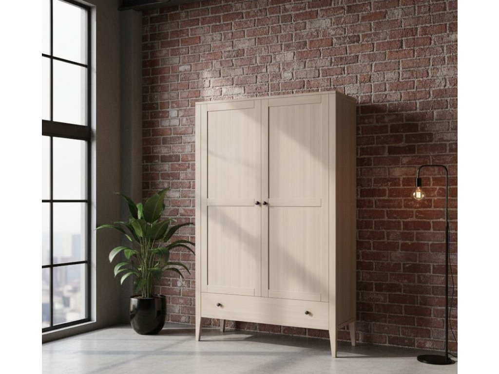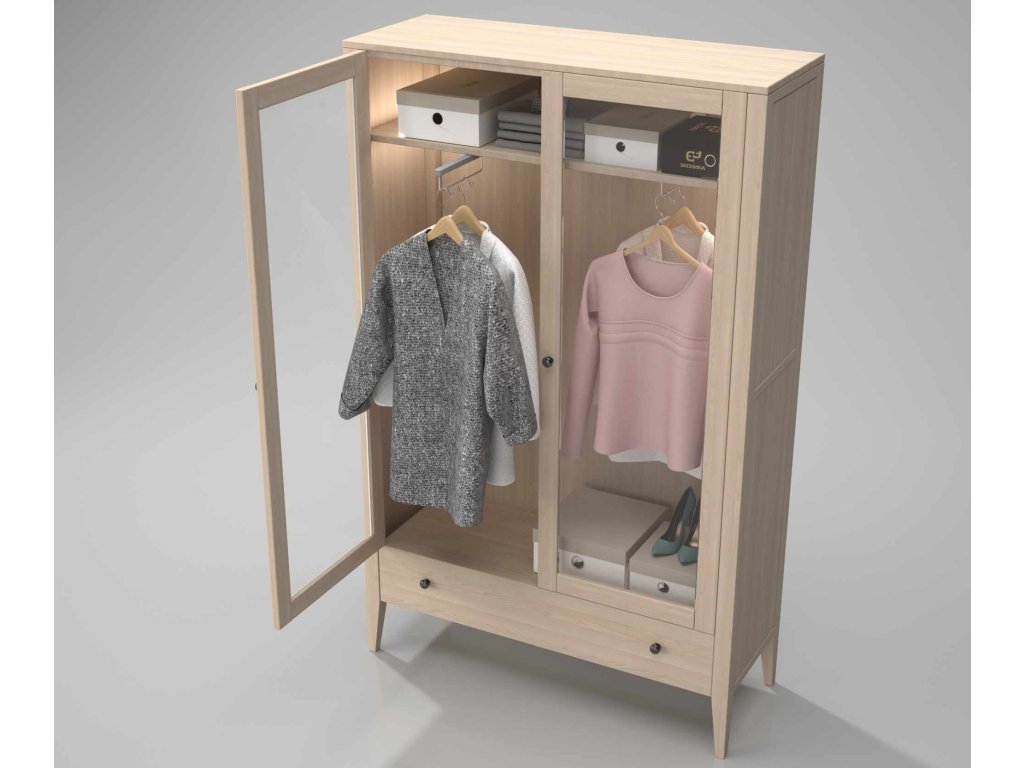 Masívna skriňa ROMA je vyrobená z masívneho tvrdého bukového dreva a ošetrená bezfarebným lakom, ktorý dáva vyniknúť krásnej kresbe dreva. Balenie dopĺňa voliteľné vnútorné osvetlenie a 20 cm priestor pod skrinkou, ktorý uľahčuje údržbu a zaručuje, že sa pod ňu zmestí akýkoľvek robotický vysávač. Šatníková skriňa ponúka výsuvné vešiaky a policu na uloženie všetkého potrebného vrchného oblečenia.