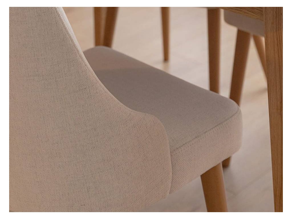 Čalúnenie je vyrobené z vysokokvalitnej šenilovej tkaniny s gramážou 380 g/m², ktorá je odolná proti oderu a ľahko sa čistí, čo zaručuje dlhú životnosť kresla. Sedadlo je vyplnené polyuretánovou penou s tvrdosťou T-35 a čalúnením, ktoré poskytuje maximálny komfort sedenia.