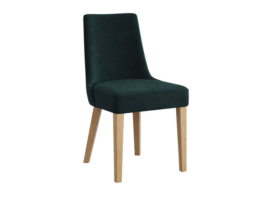 Zelený potah vyrobený z odolné tkaniny dodává židli nejen sofistikovaný vzhled, ale také snadnou údržbu. Pevné dřevěné nohy zajišťují stabilitu a dlouhou životnost, zatímco přírodní odstín dřeva dokonale ladí s různými styly interiérů – od klasických až po moderní skandinávské.