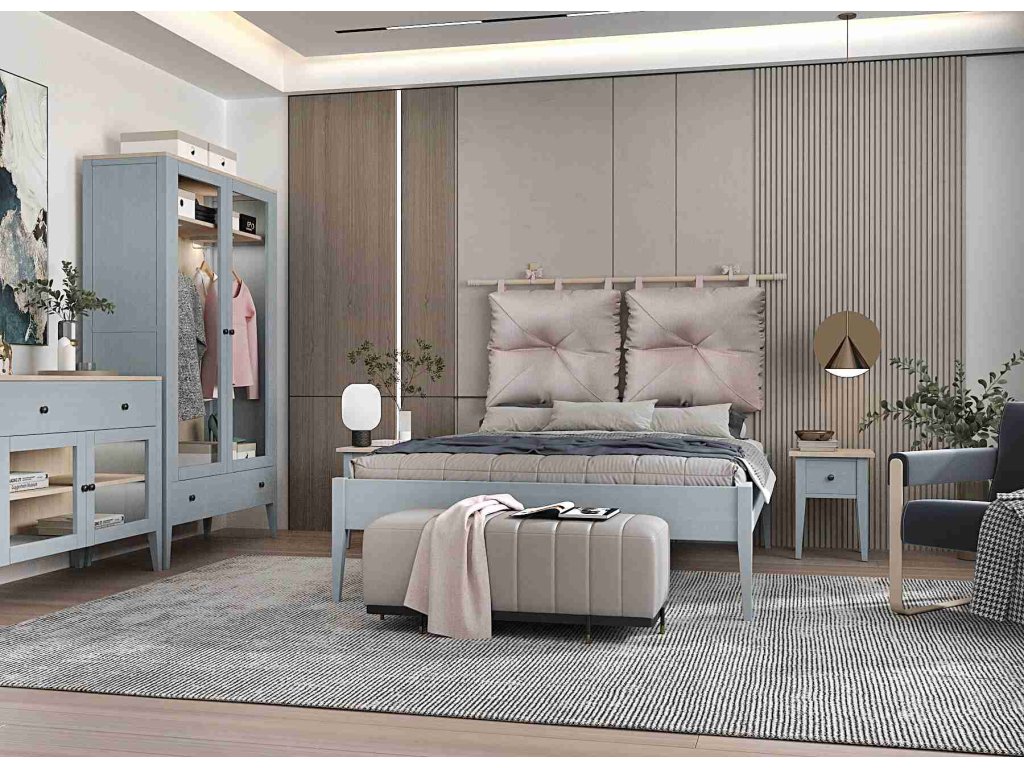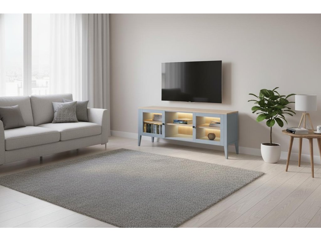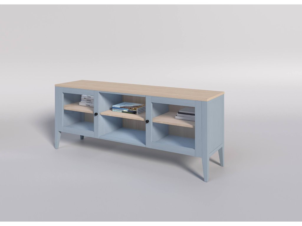 Bukový TV stolek ROMA KT4 šedomodrý