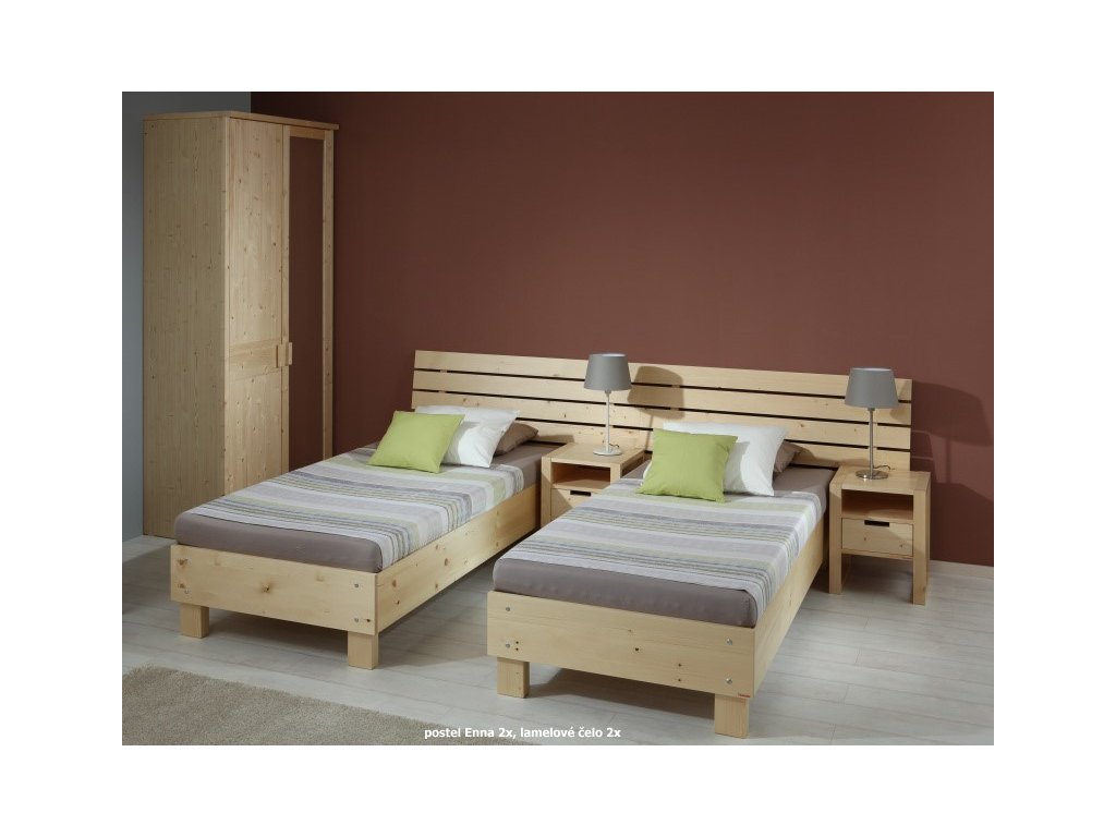 Pokud zařizujete ložnici v moderním stylu, pak vás jistě zaujme Lamelové čelo k posteli ENNA, které je skvělým doplňkem Masivní postele ENNA 90 cm. Kombinace čela s postelí působí svěže a moderně.