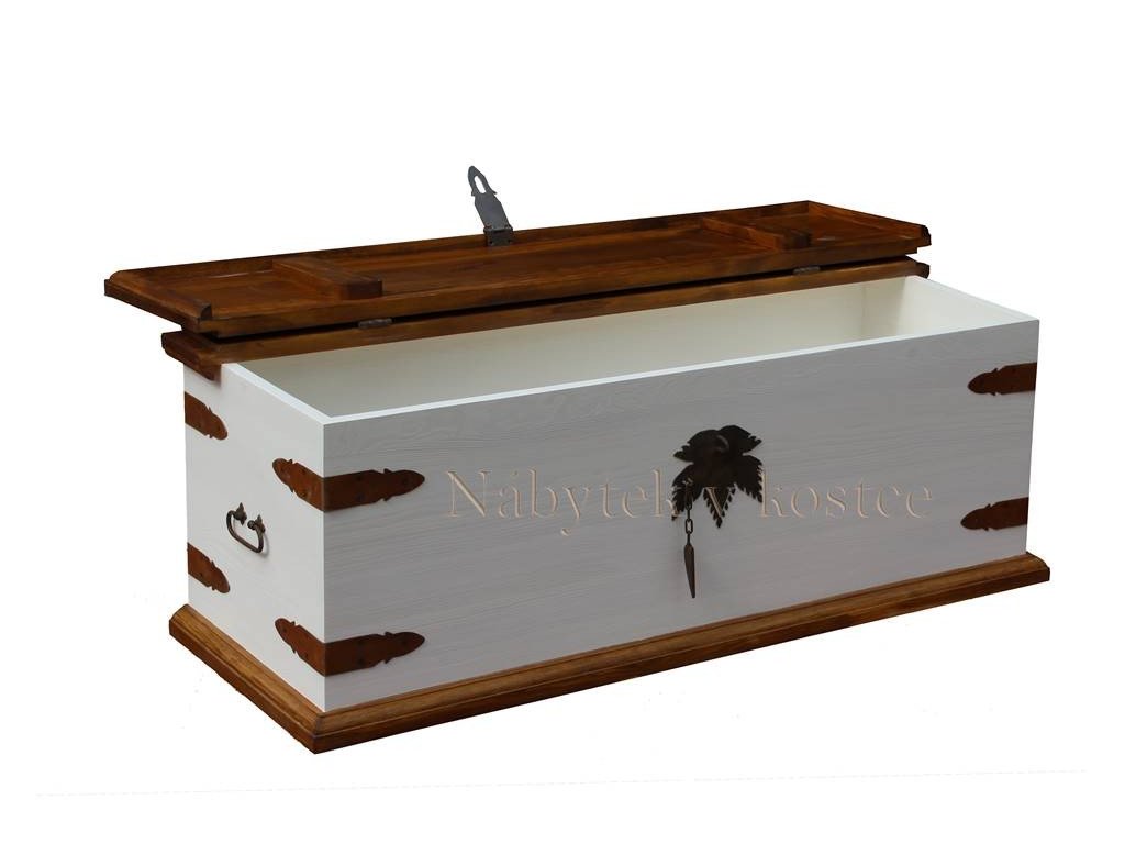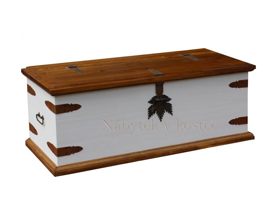 Masívna truhlica SWEET HOME z kolekcie SWEET HOME sa bude páčiť tým, ktorí milujú vidiek. Rustikálny štýl v kombinácii bielej a hnedej farby vytvára nezabudnuteľnú atmosféru starých čias. Truhlica je ideálna aj ako úložný box Rustikálny dizajn zdôrazňuje klasické línie, ozdobné kovanie na bočných stranách.