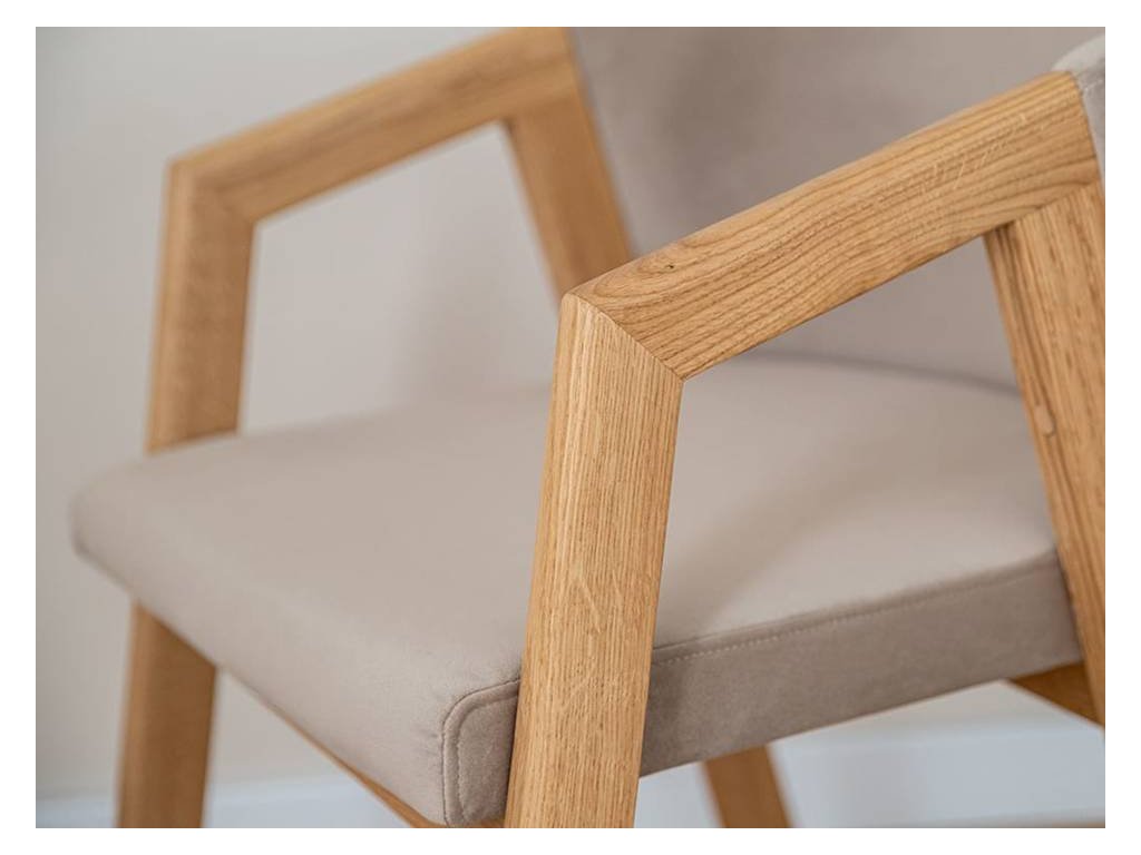 Jídelní židle FORET je ukázkou nadčasového designu, kde se snoubí přírodní krása masivního dřeva s měkkostí moderního čalounění. Její konstrukce je vyrobena z pevného divokého dubu, který vyniká výraznou kresbou a vysokou odolností. Povrch dřeva je ošetřen přírodním olejem, který zvýrazňuje strukturu a zajišťuje dlouhou životnost materiálu.
