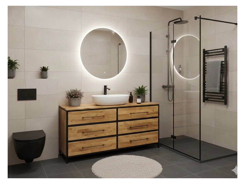Ak vašej kúpeľni chýba punc elegancie a originálneho dizajnu, ktorý by nadchol každého milovníka kvalitného dreva, potom je Drevená kúpeľňová skrinka pod umývadlo MARGARET tou správnou voľbou. Tátoskrinka skrinka pod umývadlo je znakom luxusu a jej dizajn v štýle loftu určite oceníte aj pre jej praktickosť. Šesť zásuviek sa opäť postará o vaše nevyhnutné veci.