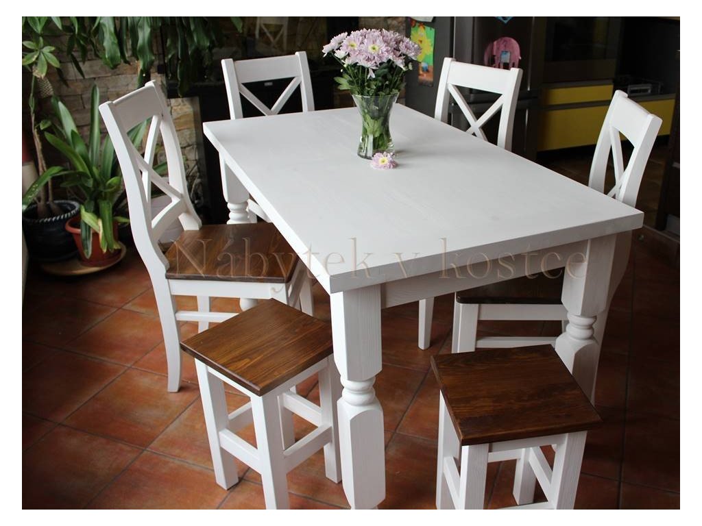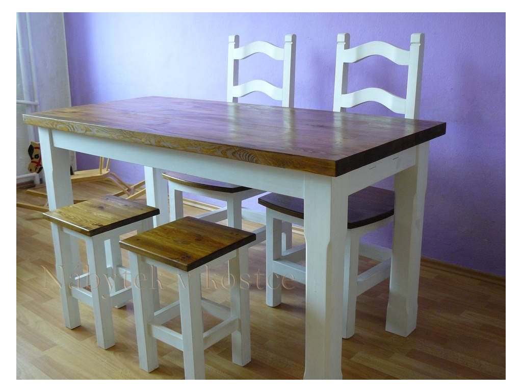 Rustikálna stolička SWEET HOME je vyrobená z masívneho borovicového dreva a je ošetrená bielou vodou riediteľnou farbou alebo v dvojfarebnej kombinácii (pozri. Šablóna). Pre jednoduchšiu údržbu odporúčame objednať nábytok s hnedou vrchnou doskou v lakovanom vyhotovení. Tento nádherný bielo-hnedý stôl poskytne pohodlné a priestranné sedenie s malými nárokmi na priestor.