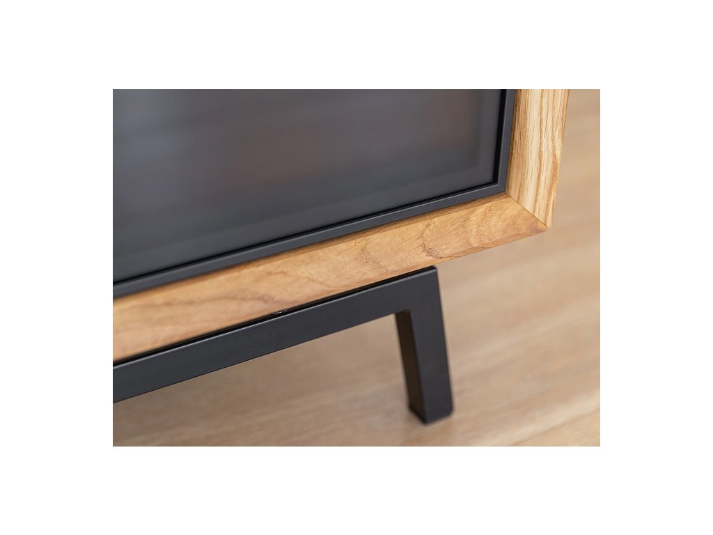 Táto štýlová komoda z masívneho dreva, ktorá kombinuje prírodné drevo s pevným kovovým rámom, bude dominantou každej obývačky, spálne alebo jedálne. Horná časť komody poskytuje priestor na rastliny v kvetináčoch, rodinné fotografie alebo aromatické sviečky.