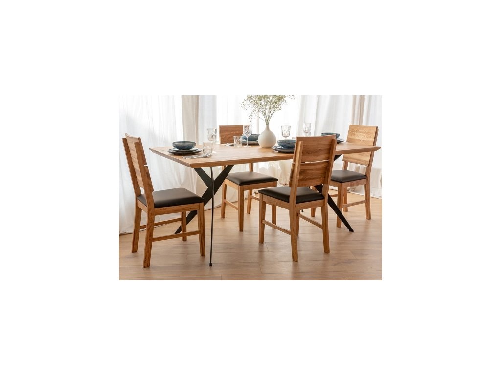 Židle VERTO se vyznačuje jednoduchou, opticky lehkou konstrukcí, která nezatěžuje prostor a hodí se tak do jakéhokoli interiéru, bez ohledu na jeho velikost. Nelze opomenout ani olejovým nátěrem zdůrazněnou kresbu dubu a nepravidelná zrna a suky, jež zkrášlují povrch masivu a propůjčují nábytku šarm a jedinečnost.