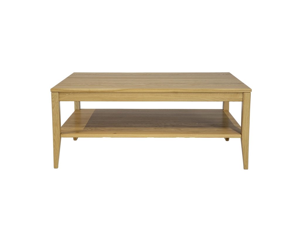 Dubový konferenčný stolík OSLO je luxusný konferenčný stolík s policou, vyrobený z masívneho dubového dreva. Povrch je ošetrený bezfarebným lakom.