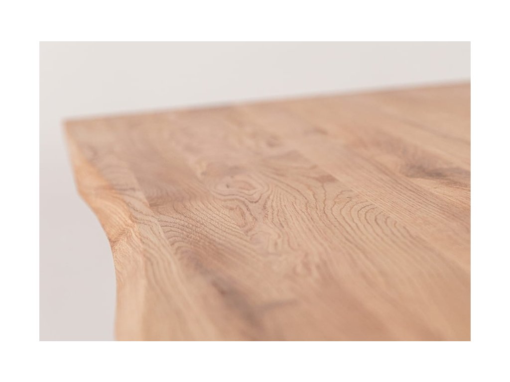 Povrch stola bol ošetrený olejovou úpravou, ktorá dodáva nábytku dodatočnú ochrannú vrstvu a zároveň zvýrazňuje prirodzenú štruktúru dreva, početné zrná a suky, ktoré skrášľujú dubovú dosku a robia zo stola jedinečný a neopakovateľný kúsok, ktorý nebude mať doma nikto iný.