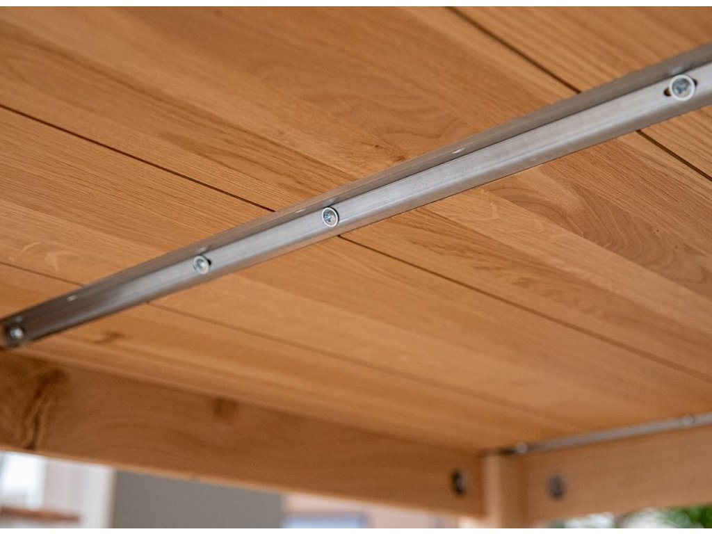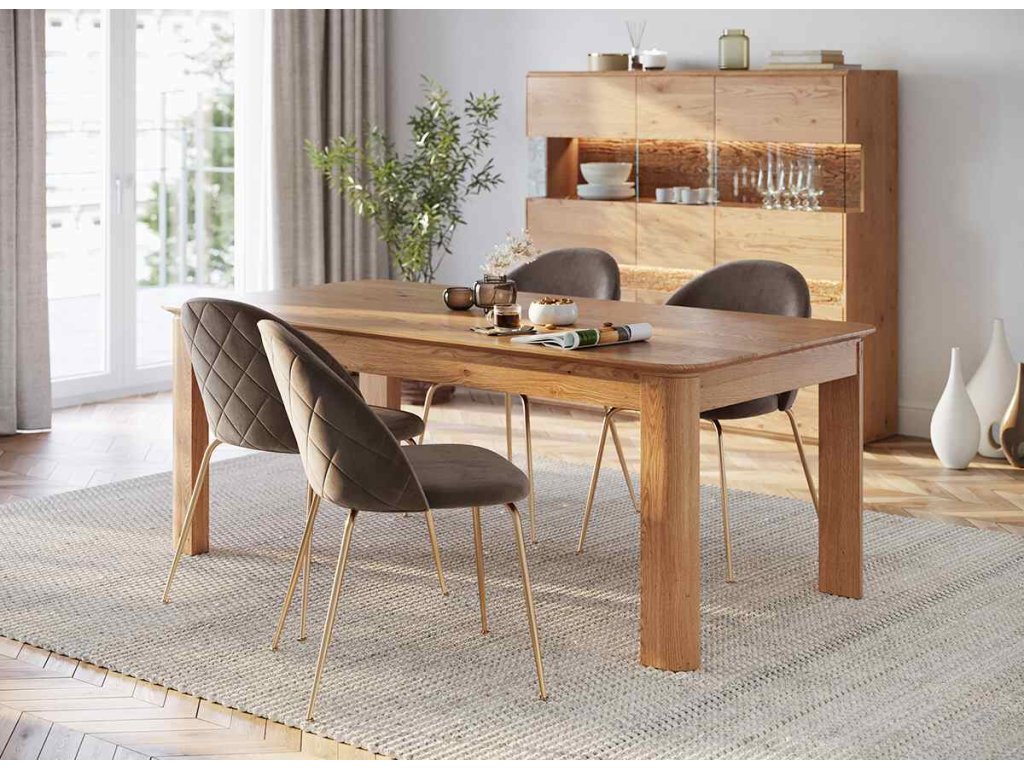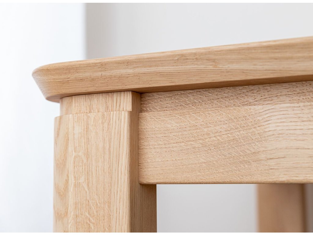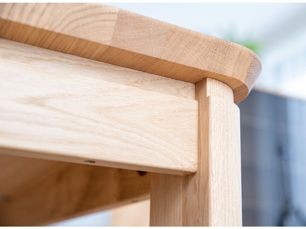 Masívne dubové drevo, z ktorého bol stôl vyrobený, je známe svojou vysokou pevnosťou, dlhodobou životnosťou a odolnosťou voči mechanickému poškodeniu. Všetky tieto vlastnosti sa potom prenášajú na nábytok, ktorý je z neho vyrobený. Trvanlivosť povrchu zvyšuje ochranný olejový náter, ktorý zároveň zvýrazňuje krásnu kresbu dreva a početné nepravidelné suky, ktoré zdobia povrch masívneho dreva.