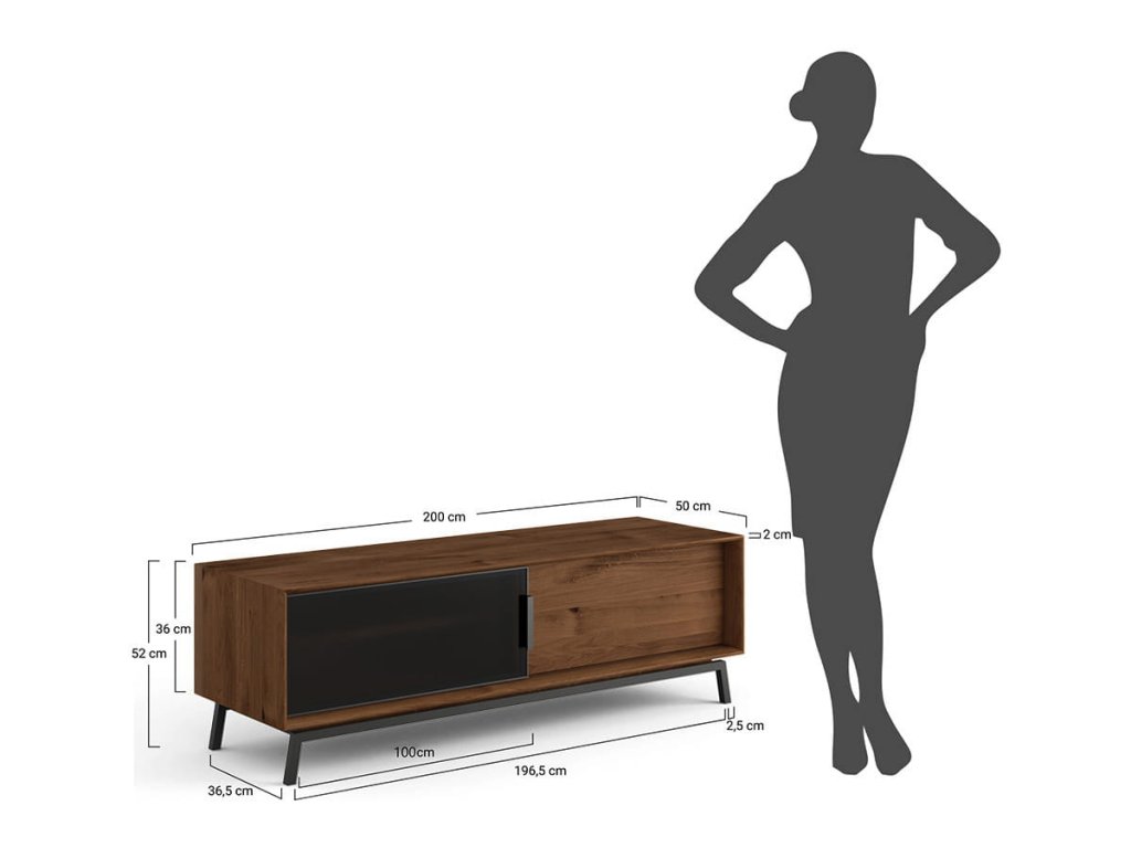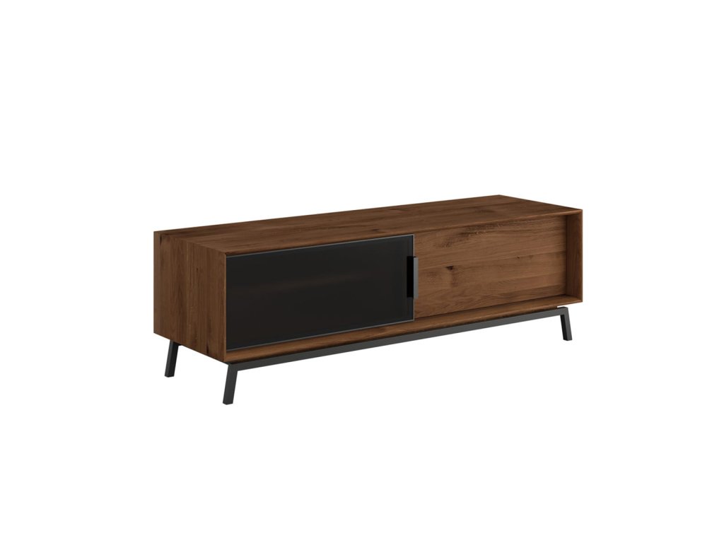 Televízny stolík z masívneho dreva MODERN Loft v tabakovej farbe je ideálny pre útulný domov s osobitým štýlom. TV stolík má originálny dizajn, kombinácia čiernej a tabakovej farby dreva doplnená úchytkou dodá interiéru jedinečnosť a originalitu. Posuvné dvere sa takmer nehlučne posúvajú po skrytých koľajničkách s tichou povrchovou úpravou, takže nerušia večerný pokoj a ticho v domácnosti. Pevný čierny kovový podstavec pôsobí nenápadne, ale odhodlane, ako základ, ktorý drží všetko pohromade. Krásny a jednoduchý kúsok zmasívneho dubového dreva s dušou dreva a srdcom moderného dizajnu.