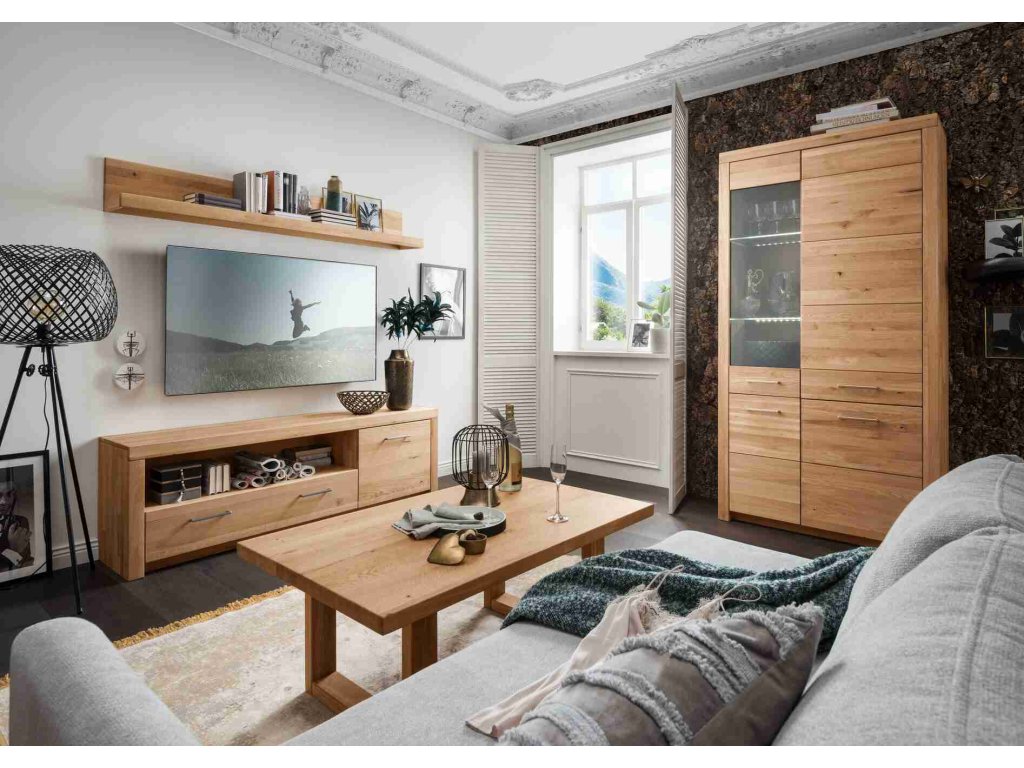 Dubový masívny TV stolík PEDRO sa dodáva zmontovaný, pripravený na vyčarovanie útulných priestorov obývačka, jedáleň a kancelária.