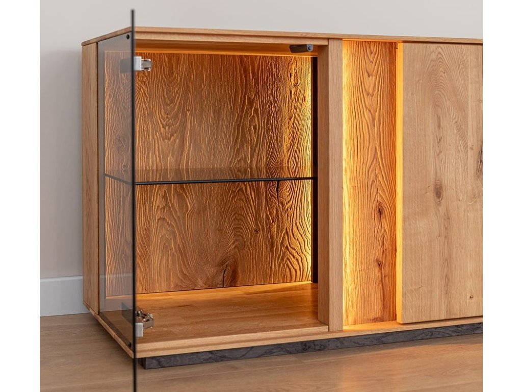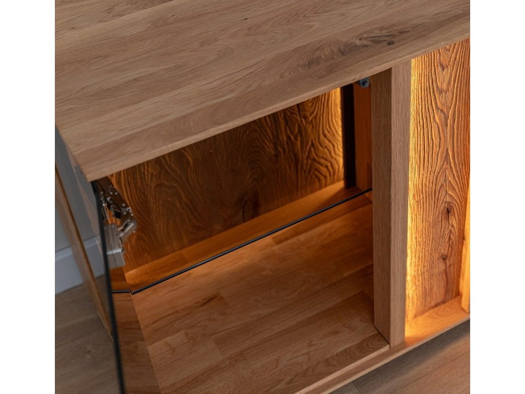 Dubový TV stolík SALVATORE s vitrínou a osvetlením