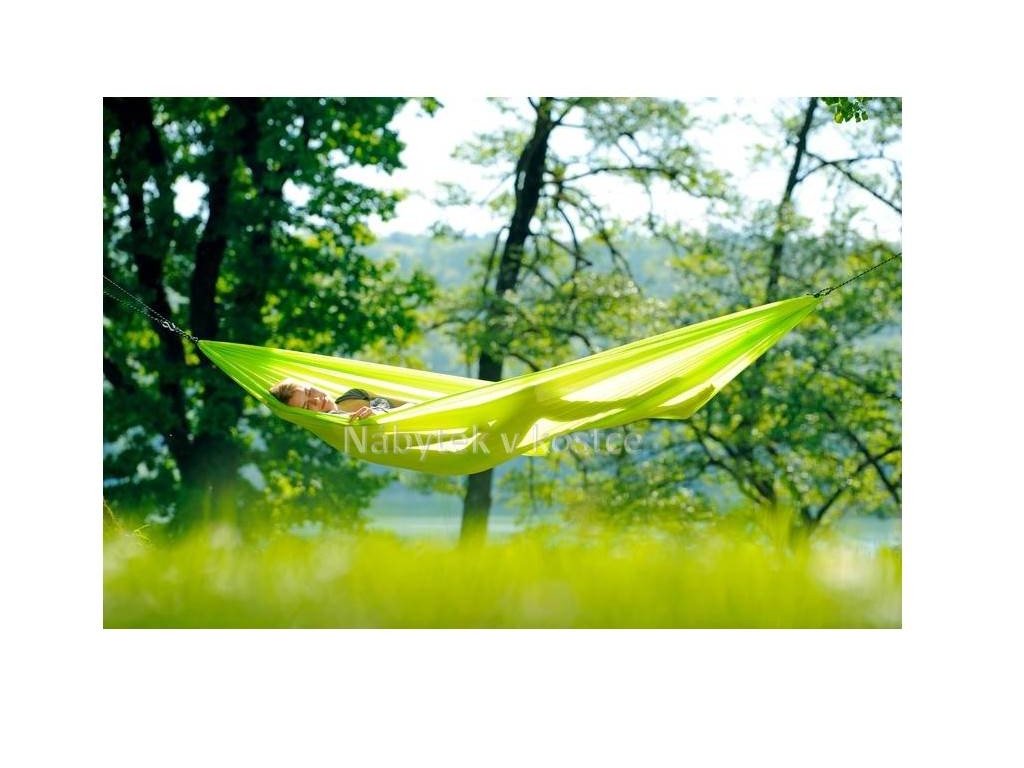 Hojdacia sieť Travel set lime má integrované laná a háčiky. Lano sa dá jednoducho niekoľkokrát obtočiť okolo stromu na každej strane a zaistiť háčikom. Vďaka nízkej hmotnosti a malým rozmerom vám nebude prekážať v batohu alebo ho môžete nosiť vo väčšom vrecku.