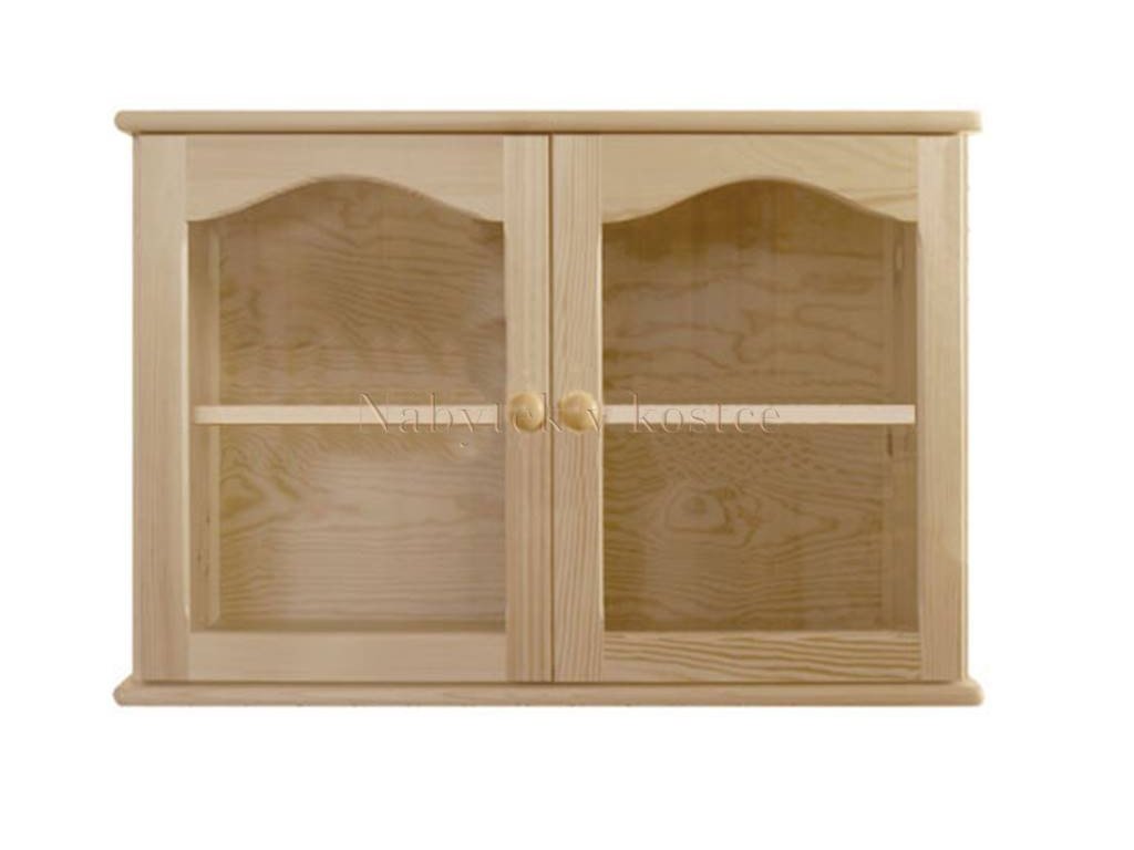 Horná kuchynská skrinka so sklom je veľmi originálna a tvarovo atypická. Horná kuchynská skrinka 2D je uzavretá 2 sklenenými dvierkami. V strede vitríny je jedna polica. Závesná vitrína DEJ49 je vyrobená z masívneho borovicového dreva s dôrazom na použitie minimálneho množstva sukov.