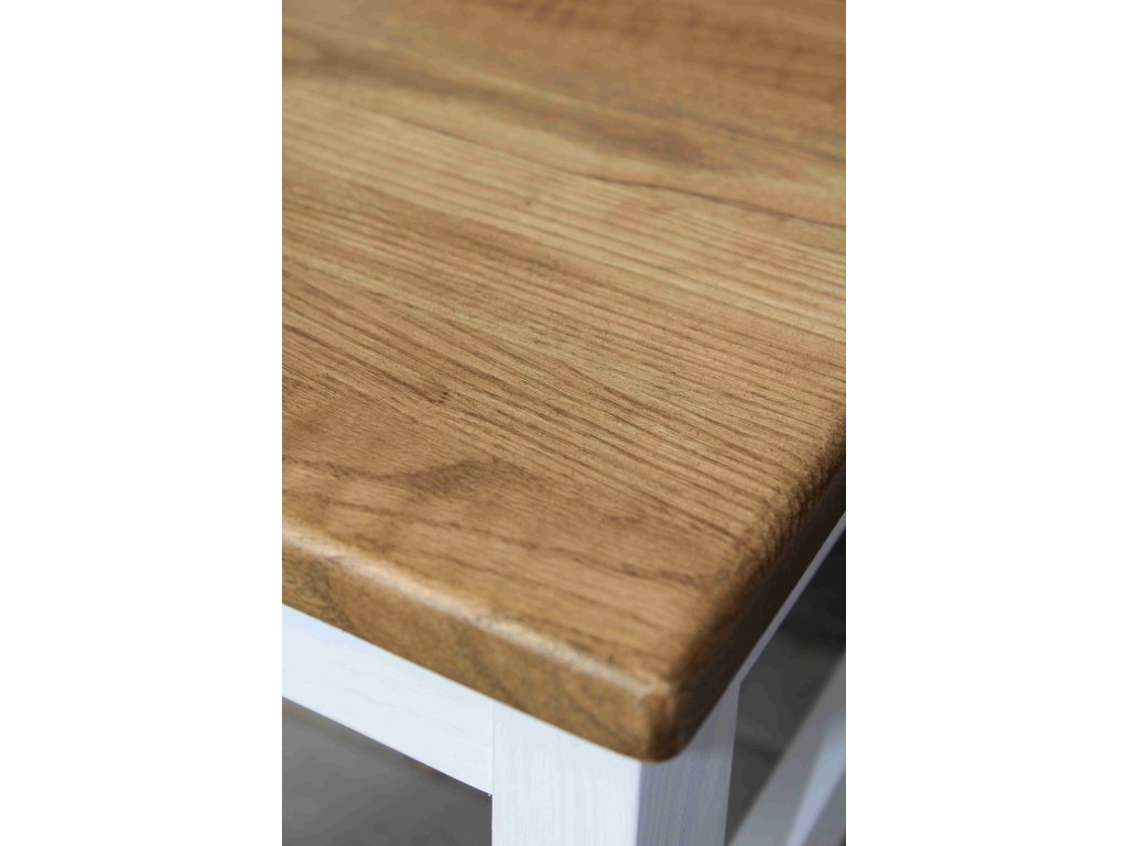 Masivní jídelní židle PROVENCE je vyrobena z masivního borovicového dřeva. Horní deska může být vyrobena z borovicového anebo dubového dřeva. Sedací část je ošetřena lakem a nohy židle barvou v krémové barvě.