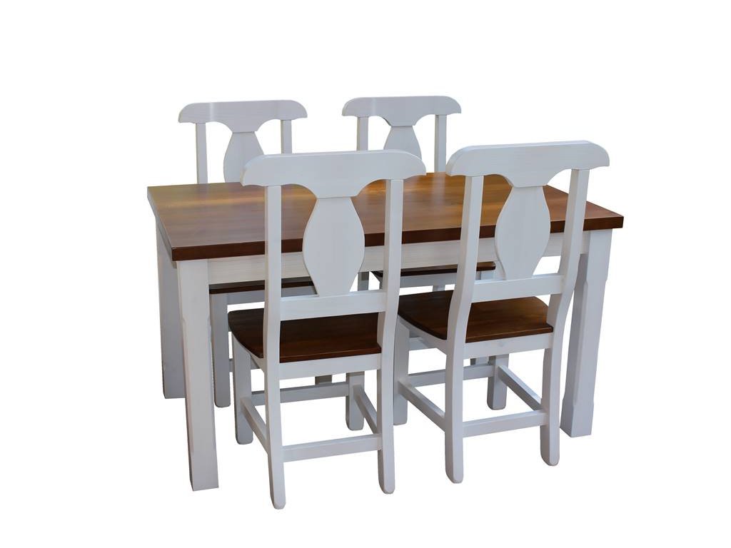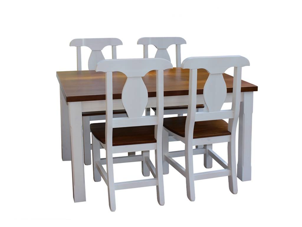 Rustikálny jedálenský set AVIGNON je vyrobený z masívneho borovicového dreva a ošetrený bielou vodou riediteľnou farbou. Hnedé plochy sa ošetria farebným pigmentom a potom sa nalakujú. Klasický rustikálny dizajn je medzi zákazníkmi už mnoho rokov veľmi obľúbený.