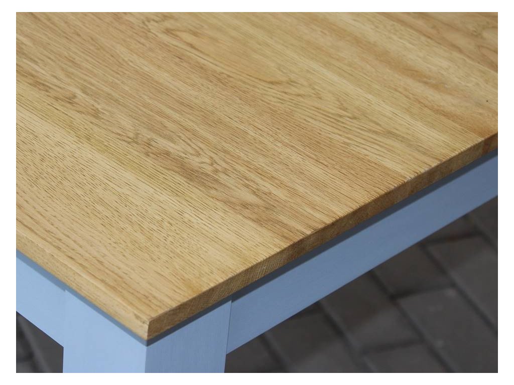 Masívny jedálenský stôl PROVENCE je vyrobený z masívneho bukového dreva a ošetrený akrylovou farbou v sivomodrej farbe. Doska stola je vyrobená z masívneho dubového dreva a ošetrená lakom.