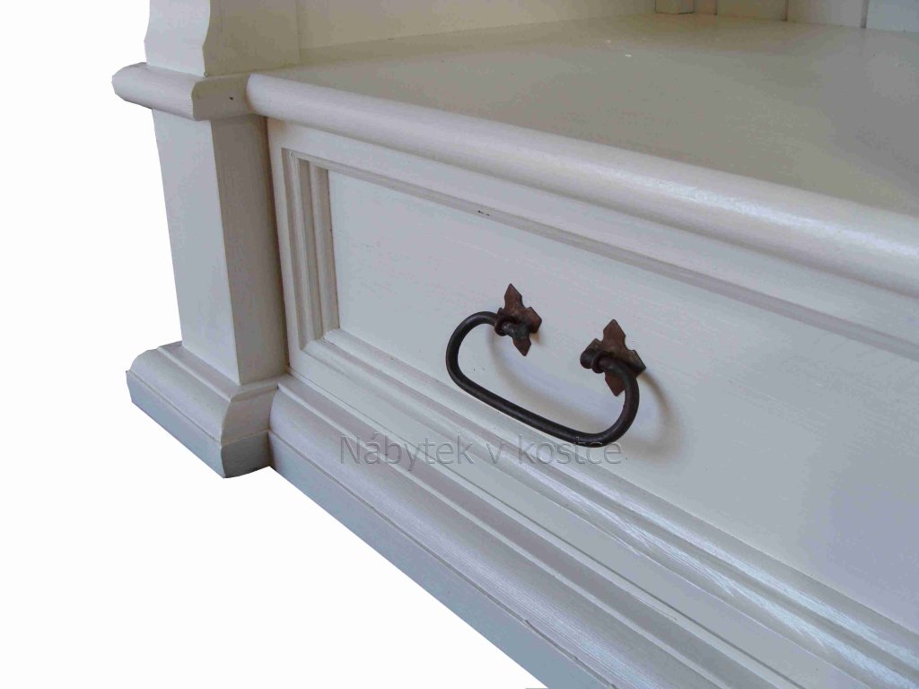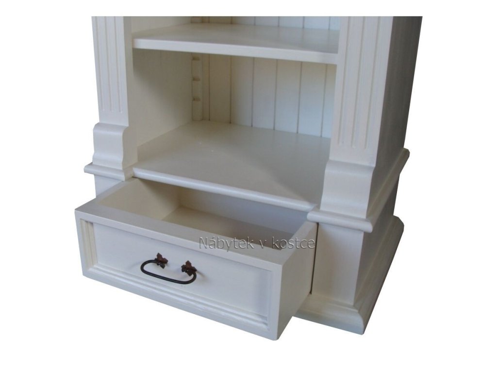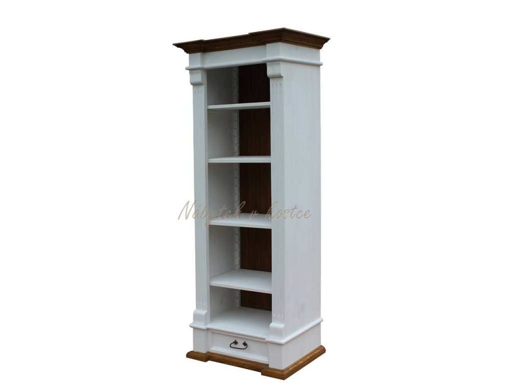 Knihovna SWEET HOME patří mezi oblíbený produkt našich stálých zákazníku. Rustikální knihovna SWEET HOME je masivní skříň na knihy vyrobena z borovicového masivního dřeva a ošetřena bílou vodou ředitelnou barvou. Hnědé plochy mohou být ošetřeny voskem anebo lakem. Ze dřeva jsou rovněž vyrobeny i pojezdy na šuplíky a polic a zadní část, díky čemuž působí knihovna opravdu velmi luxusně. Stylové úchyty dodávají skříni knihovně nadčasovou eleganci. Knihovna z masivu najde své uplatnění v prostorách pracovny, obývacího pokoje i dětského pokoje. Bude skvělým sluhou na knihy, upomínkové předměty, šanony i hračky.
