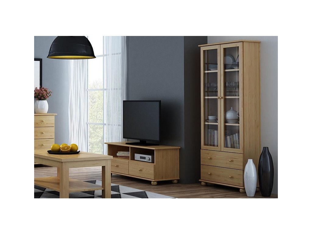 Knižnica z masívu Šumava 67a je vyrobená z masívneho borovicového dreva a ošetrená bezfarebným lakom, ktorý dáva vyniknúť krásnej štruktúre dreva. Táto praktická skrinka má dve police, skrinku a tri zásuvky na kvalitných kovových jazdcoch s praktickými okrúhlymi drevenými úchytkami. Čelá zásuviek sú v hladkom, jednoduchom štýle s čistými líniami. Dvierka skrinky sú zdobené frézovaním, ktoré dodáva knižnici eleganciu.
