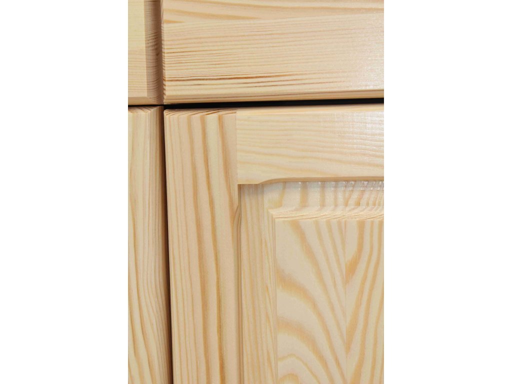 Knižnica z masívu Šumava je vyrobená z masívneho borovicového dreva a ošetrená bezfarebným lakom, ktorý dáva vyniknúť krásnej štruktúre dreva. Táto praktická skrinka má vlastné police a skrinku s praktickými okrúhlymi úchytkami z dreva. Čelá zásuviek sú v hladkom, jednoduchom štýle s čistými líniami. Dvierka skrinky sú zdobené frézovaním, ktoré dodáva knižnici eleganciu.