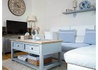 Každá časť Francúzska je prísľubom jedinečnej atmosféry, a tak je to aj v oblasti juhovýchodného Francúzska, ktorú poznáte pod zasneným názvom Provence. Táto oblasť, ktorá sa stala múzou mnohých svetoznámych maliarov a básnikov a kde vládne všadeprítomná levanduľa, nám pripomína našu novú kolekciu Provence. Z romantických častí krajiny, kde Francois Villon a Victor Hugo písali svoje básne. Z krajiny, ktorá udáva štýl a ktorú vyhľadávajú všetci milovníci romantiky a vintage štýlu, prichádza na naše stránky závan francúzskeho vidieka v podobe našej novej kolekcie Provence. Kolekcia Provence je štýlový, vkusný a jemný nábytok v obľúbenom francúzskom štýle. Nábytok Provence je vyrobený z masívneho bukového dreva a ošetrený akrylovou farbou v bielej alebo sivomodrej farbe. Horné hnedé časti sú vyrobené z masívneho dubového dreva a ošetrené olejom. Kombináciou týchto dvoch materiálov sme dosiahli veľmi efektný vzhľad, ktorý nikto hneď tak neprehliadne.