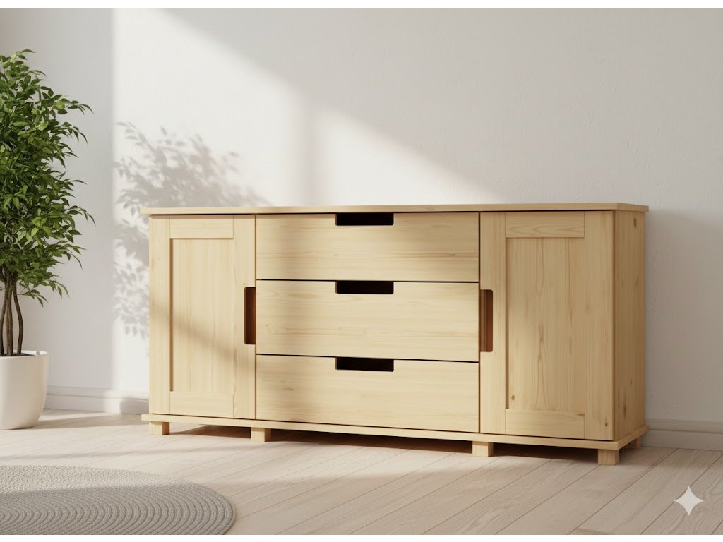 Komoda z masívneho dreva FELIX 4 je masívna komoda, ktorá sa prezentuje moderným dizajnom a dokonalým spracovaním. Je vyrobená z masívneho borovicového dreva a v prírodnej verzii je ošetrená ekologickým lakom na vodnej báze, ktorý nepredstavuje žiadne zdravotné riziko.