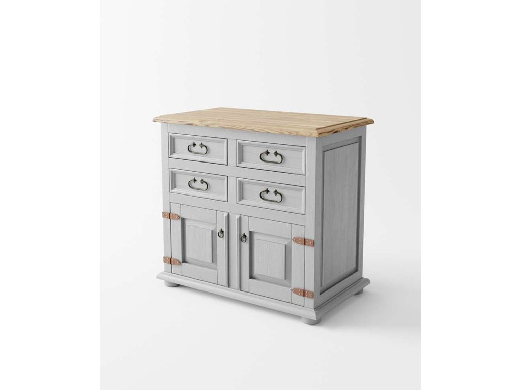 Komoda Hacienda Grey 4S2D z masívneho dreva.