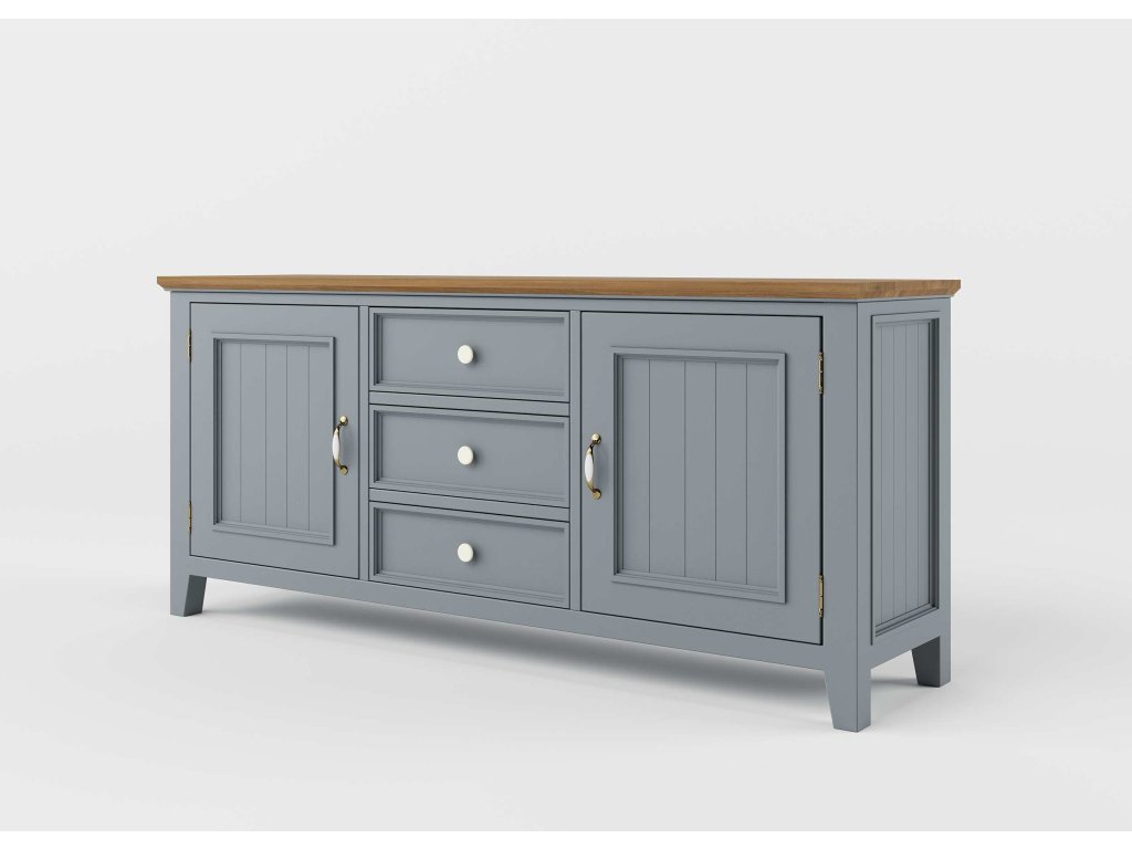 Masívna komoda PROVENCE je kombináciou bukového a dubového dreva. Dubové drevo (vrchná doska) je ošetrené lakom a bukové drevo je ošetrené akrylovou farbou sivomodrej farby. Zásuvky sú bez posunu. Možno objednať so systémom tichého zatvárania (pre zásuvky).