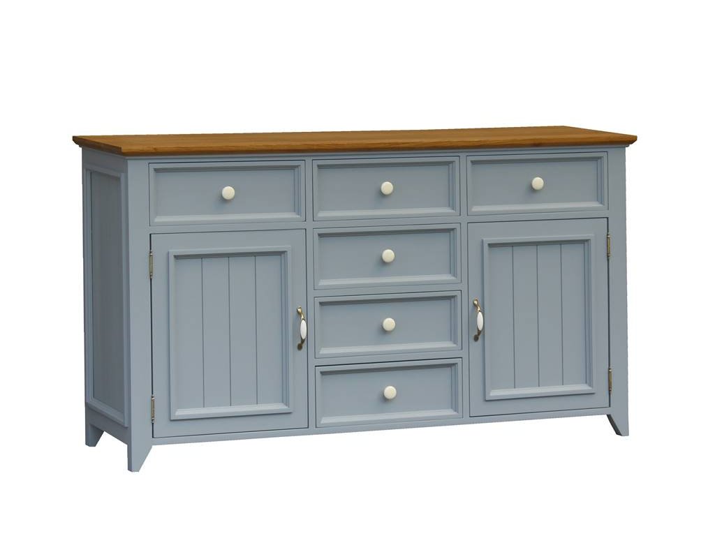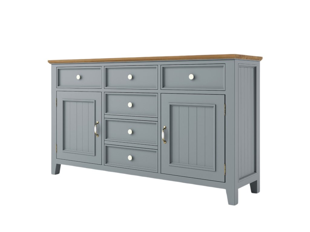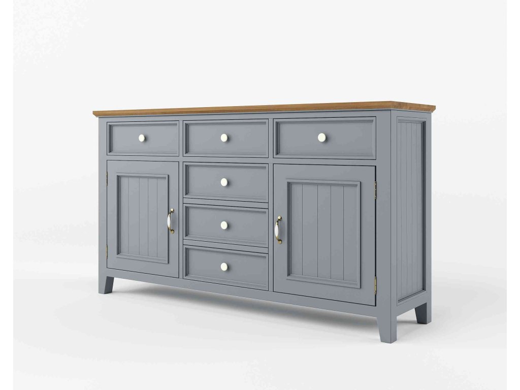 Komoda PROVENCE z masívneho dreva je kombináciou bukového a dubového dreva. Dubové drevo (vrchná časť) je ošetrené lakom a bukové drevo je ošetrené akrylovou farbou v šedomodrej alebo bielej farbe. Zásuvky sú bez posunu. Možno objednať so systémom tichého zatvárania (pre zásuvky) - cena na vyžiadanie.