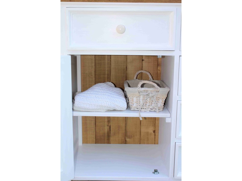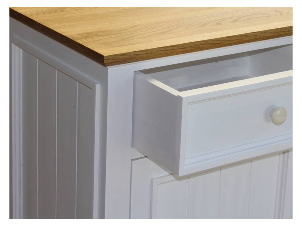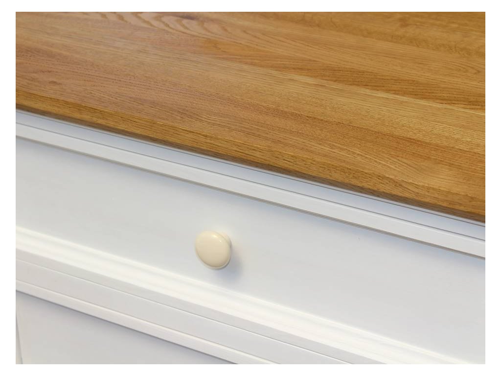Komoda PROVENCE z masívneho dreva je kombináciou bukového a dubového dreva. Dubové drevo (vrchná časť) je ošetrené lakom a bukové drevo je ošetrené akrylovou farbou bielej farby. Zásuvky sú bez posunu. Možno objednať so systémom tichého zatvárania (pre zásuvky) - cena na vyžiadanie.