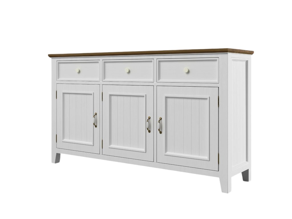 Kolekcia PROVENCE. Ide o štýlový, vkusný a jemný nábytok v obľúbenom francúzskom štýle. Nábytok PROVENCE je vyrobený z masívneho bukového dreva a ošetrený akrylovou farbou v bielej alebo sivomodrej farbe. Horné hnedé časti sú vyrobené z masívneho dubového dreva a ošetrené lakom. Kombináciou týchto dvoch materiálov sme dosiahli veľmi efektný vzhľad, ktorý sa hneď tak neprehliadne.