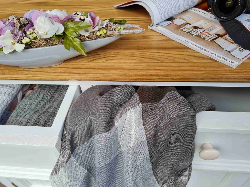 Masívna komoda PROVENCE je kombináciou bukového a dubového dreva. Dubové drevo (vrchná časť) je ošetrené lakom a bukové drevo je ošetrené akrylovou farbou bielej farby. Zásuvky sú bez posunu. Možno objednať so systémom tichého zatvárania (pre zásuvky).