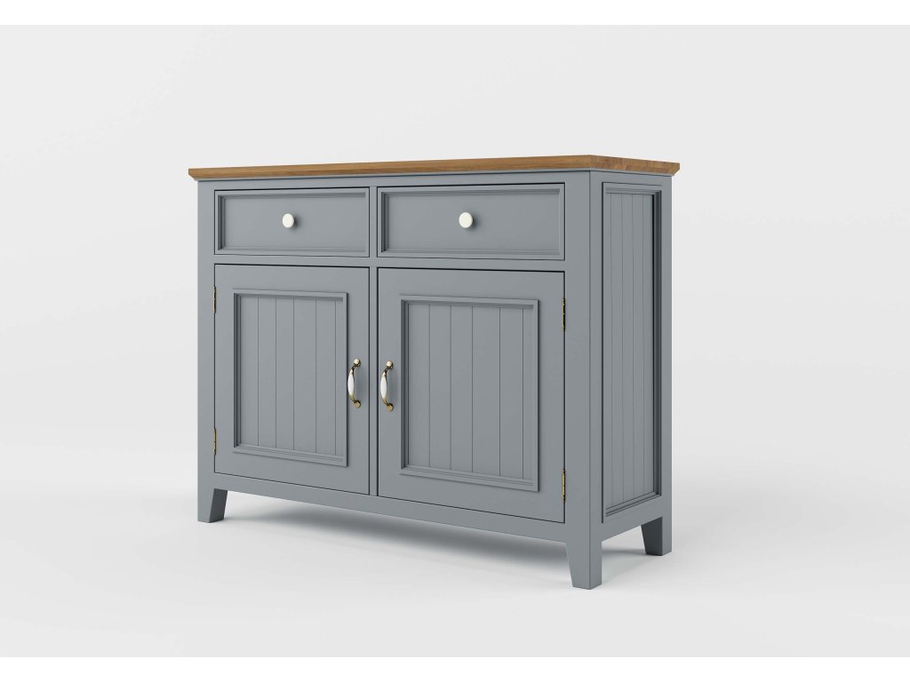 Masívna komoda PROVENCE je kombináciou bukového a dubového dreva. Dubové drevo (vrchná doska) je ošetrené lakom a bukové drevo je ošetrené akrylovou farbou sivomodrej farby. Zásuvky sú bez posunu. Možno objednať so systémom tichého zatvárania (pre zásuvky) - cena na vyžiadanie.