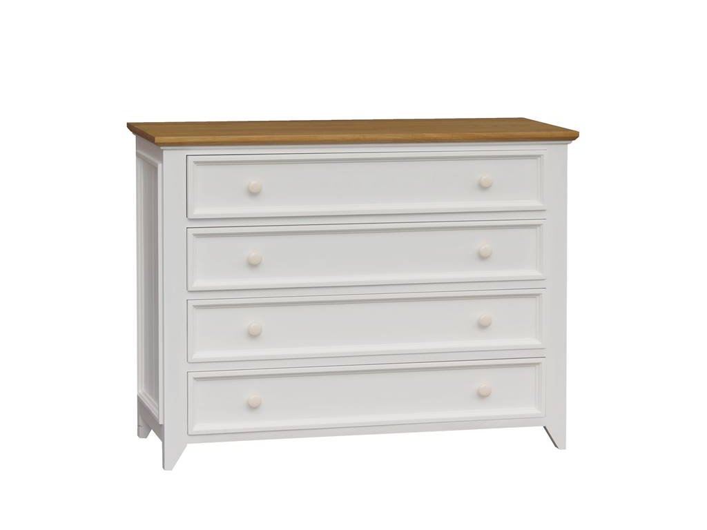Komoda PROVENCE z masívneho dreva je kombináciou bukového a dubového dreva. Dubové drevo (vrchná časť) je ošetrené lakom a bukové drevo je ošetrené akrylovou farbou bielej farby. Zásuvky sú bez posunu. Možno objednať so systémom tichého zatvárania (pre zásuvky) - cena na vyžiadanie.