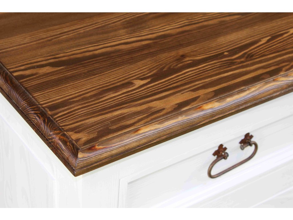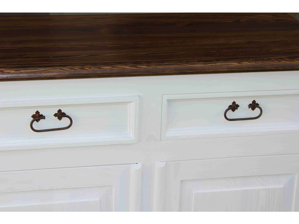 Rustikálna komoda SWEET HOME je vyrobená z masívneho borovicového dreva a je ošetrená len bielou vodou riediteľnou farbou alebo dvojfarebnou kombináciou (pozri vzorkovník). Pre jednoduchšiu údržbu odporúčame objednať nábytok s hnedou vrchnou doskou v lakovanom vyhotovení.