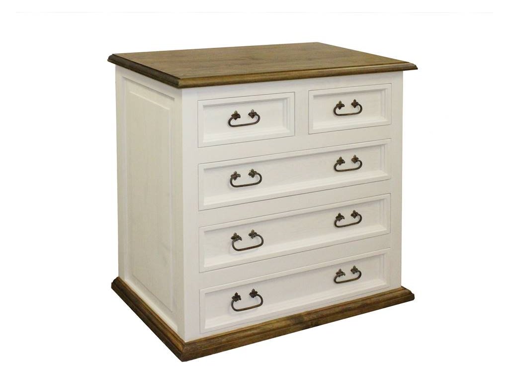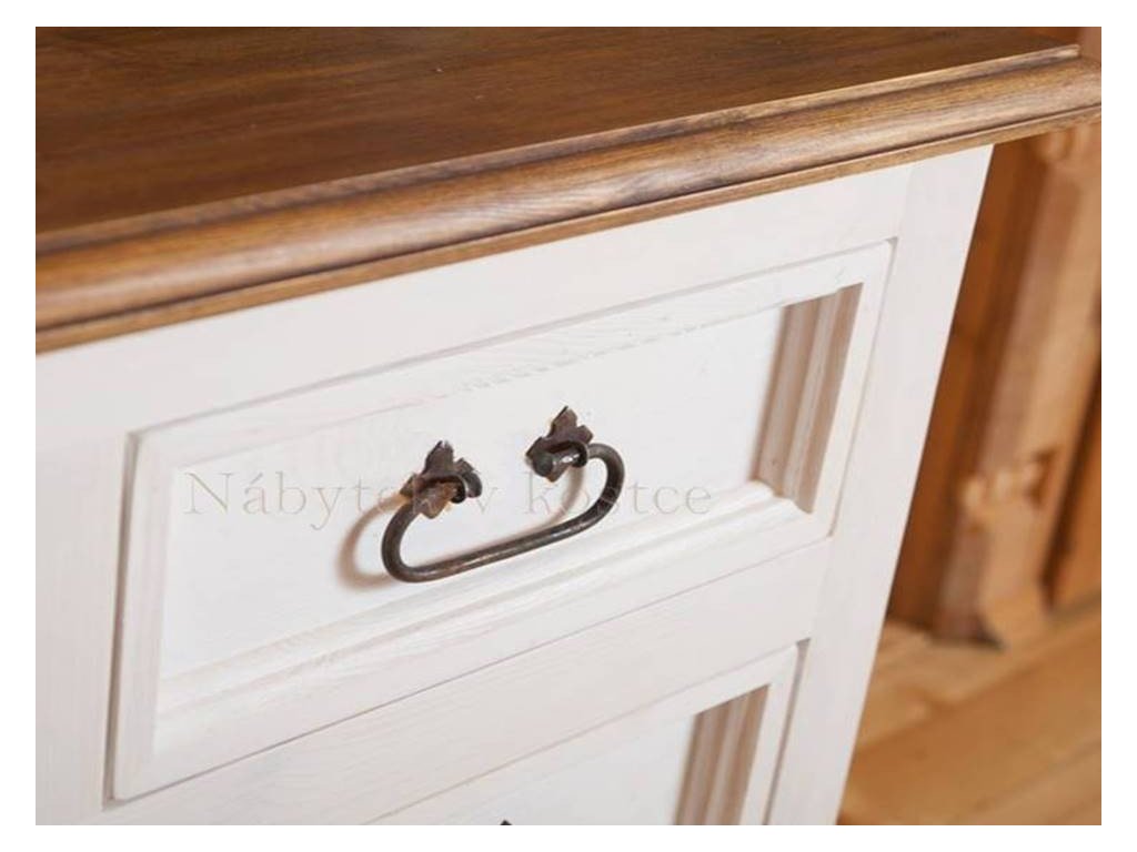 Comomasívne drevo SWEET HOME COM27 ponúka priestranné tri veľké zásuvky a dve menšie v hornej časti. Čelá zásuviek dopĺňajú štýlové úchyty v retro štýle s efektom patiny.