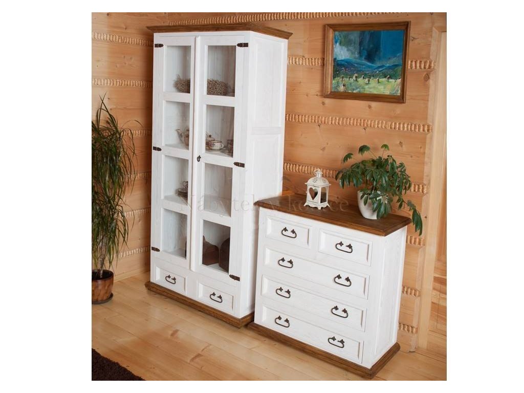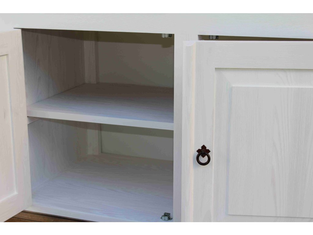 Comomasívne drevo SWEET HOME COM27 je masívna komoda vyrobená z masívneho borovicového dreva (iba zadná strana je z drevenej dyhy) a ošetrená bielou vodou riediteľnou farbou. Horné hnedé plochy možno ošetriť voskom alebo lakom Bežce zásuviek sú tiež vyrobené z dreva. Pre jednoduchšiu údržbu odporúčame objednať nábytok s hnedou vrchnou doskou v lakovanom vyhotovení.