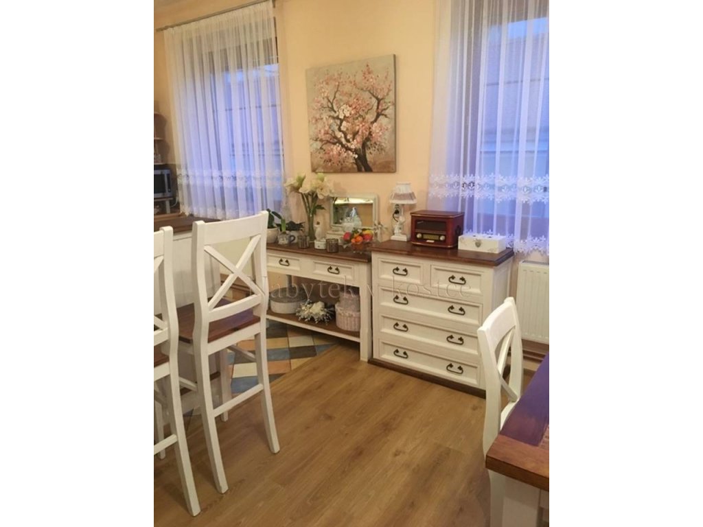 Rustikálna komoda SWEET HOME z kolekcie SWEET HOME osloví tých, ktorí majú radi bývanie vo vidieckom štýle. Romantický nábytok v kombinácii bielej a hnedej farby navodzuje nezabudnuteľnú atmosféru starých čias a tiež nádych francúzskeho vidieka v Provence. Rustikálny dizajn nábytku podčiarkujú klasické línie a štýlové kovania.
