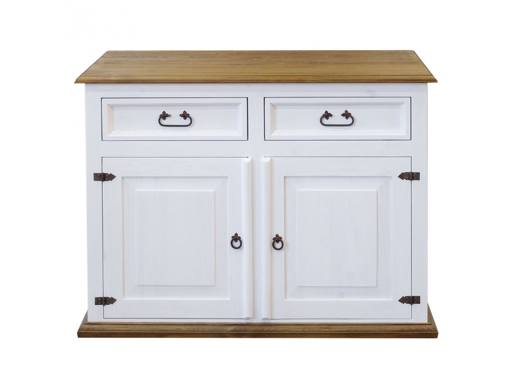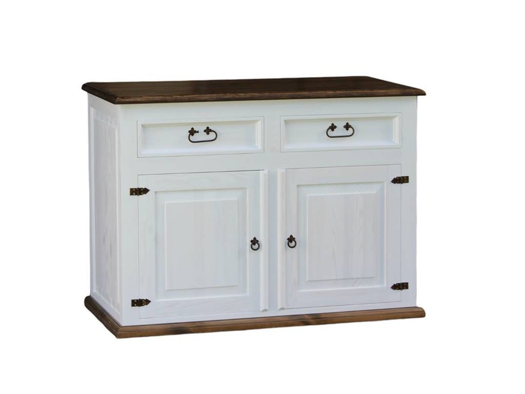 Rustikálna komoda SWEET HOME je vyrobená z masívneho borovicového dreva a je ošetrená len bielou vodou riediteľnou farbou alebo dvojfarebnou kombináciou (pozri vzorkovník). Pre jednoduchšiu údržbu odporúčame objednať nábytok s hnedou vrchnou doskou v lakovanom vyhotovení.