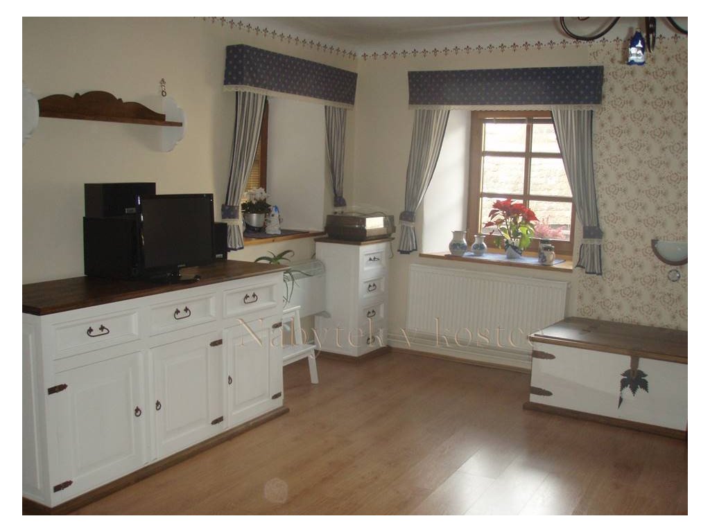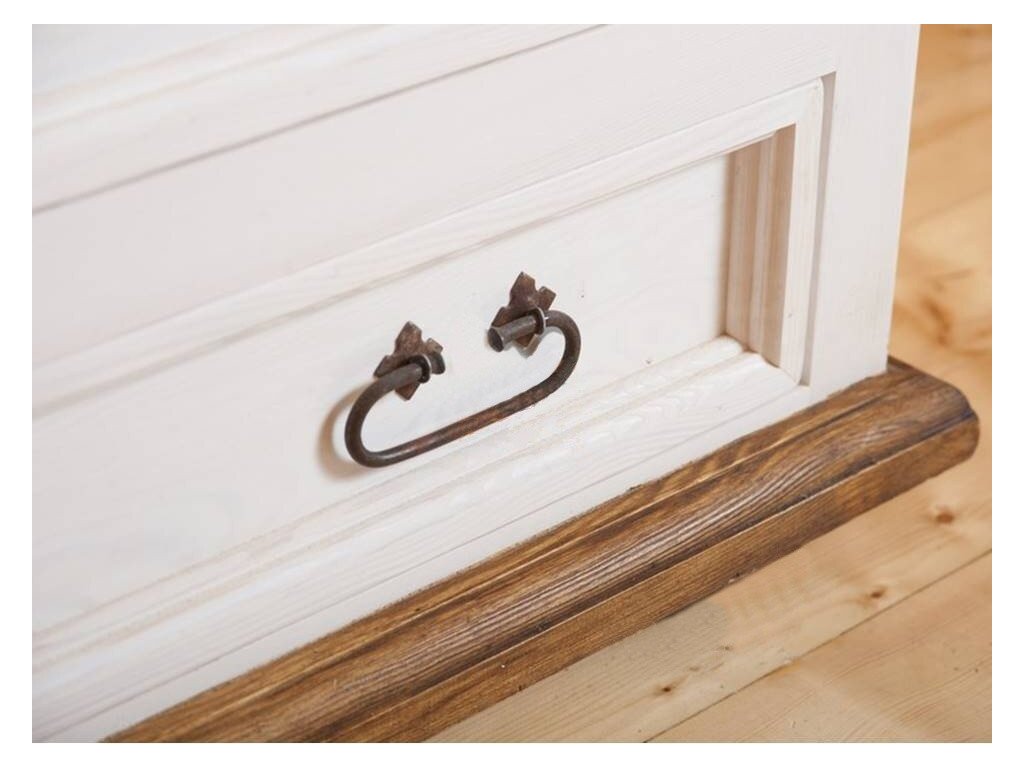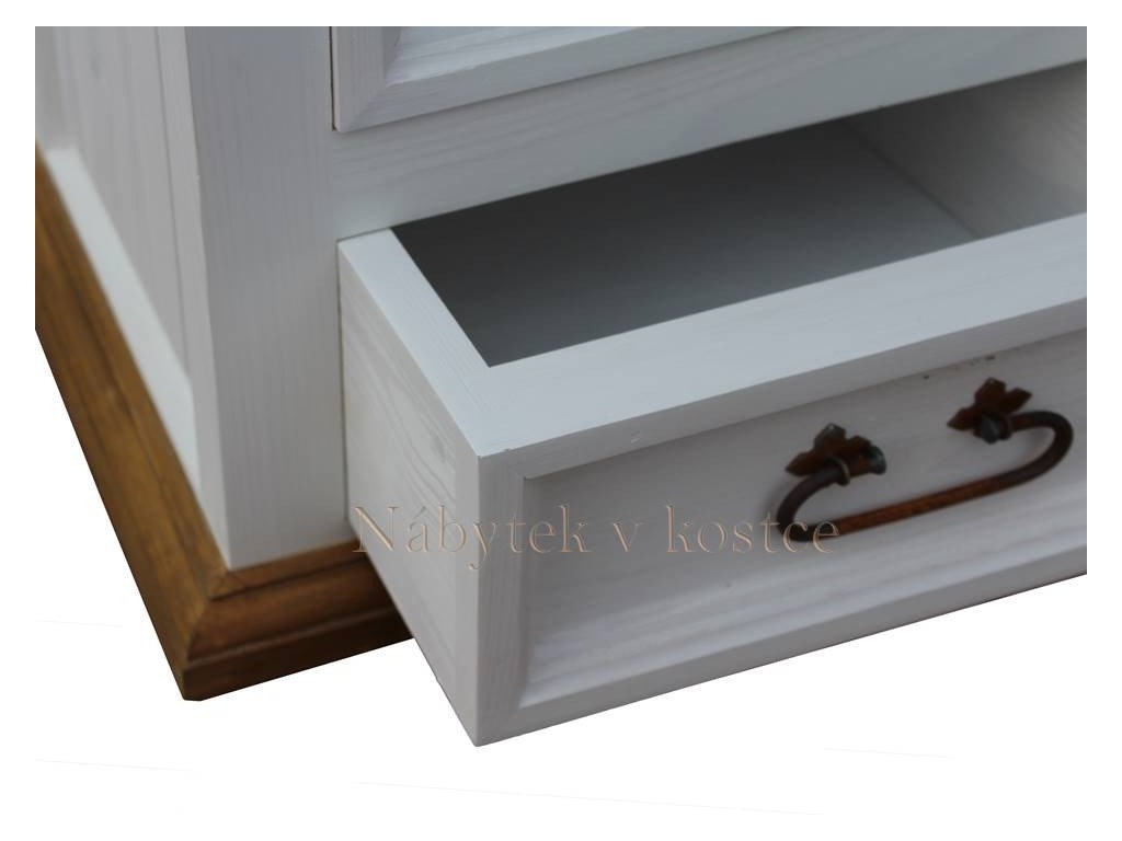 Rustikálna komoda SWEET HOME je vyrobená z masívneho borovicového dreva a je ošetrená len bielou vodou riediteľnou farbou alebo dvojfarebnou kombináciou (pozri vzorkovník). Pre jednoduchšiu údržbu odporúčame objednať nábytok s hnedou vrchnou doskou v lakovanom vyhotovení.