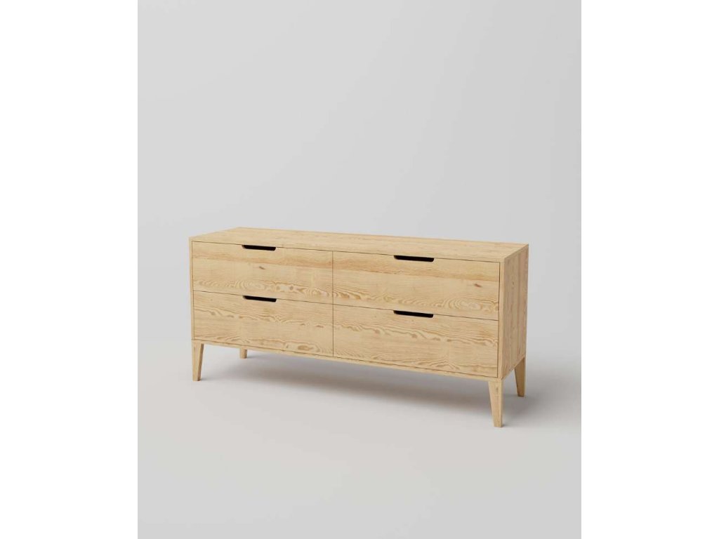 Predstavujeme vzdušný Nábytok RETRO z masívneho borovicového dreva, ktorý je nielen funkčný, ale aj krásny a jeho dizajn odkazuje na štýlový ikonický nábytok z polovice storočia. Konštrukcia nábytku je ľahká vďaka tomu, že telo nábytku je namontované na zužujúcich sa obdĺžnikových nohách. Moderným akcentom je absencia úchytiek, vďaka čomu nábytok pôsobí sviežo a moderne. Drevený nábytok je obľúbený nielen pre svoju odolnosť a vysokú životnosť, ale aj pre krásnu štruktúru a vôňu dreva, ktorá v interiéri dlho pretrváva a robí náš domov príjemnejším.