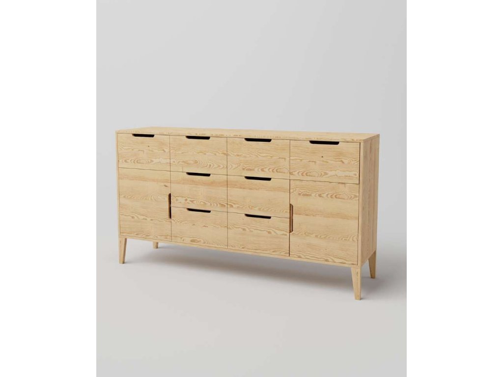 Predstavujeme vzdušný Nábytok RETRO z masívneho borovicového dreva, ktorý je nielen funkčný, ale aj krásny a jeho dizajn odkazuje na štýlový ikonický nábytok z polovice storočia. Konštrukcia nábytku je ľahká vďaka tomu, že telo nábytku je namontované na zužujúcich sa obdĺžnikových nohách. Moderným akcentom je absencia úchytiek, vďaka čomu nábytok pôsobí sviežo a moderne. Drevený nábytok je obľúbený nielen pre svoju odolnosť a vysokú životnosť, ale aj pre krásnu štruktúru a vôňu dreva, ktorá v interiéri dlho pretrváva a robí náš domov príjemnejším.