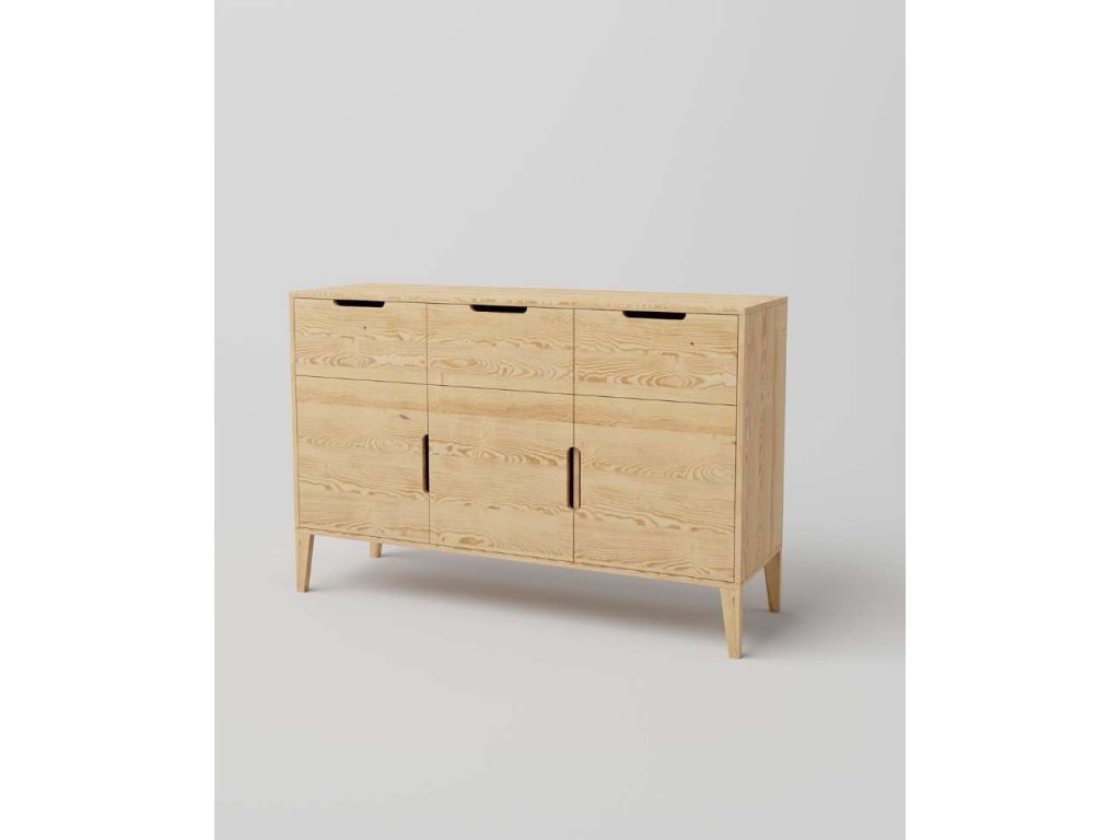 Predstavujeme vzdušný Nábytok RETRO z masívneho borovicového dreva, ktorý je nielen funkčný, ale aj krásny a jeho dizajn odkazuje na štýlový ikonický nábytok z polovice storočia. Konštrukcia nábytku je ľahká vďaka tomu, že telo nábytku je namontované na zužujúcich sa obdĺžnikových nohách. Moderným akcentom je absencia úchytiek, vďaka čomu nábytok pôsobí sviežo a moderne. Drevený nábytok je obľúbený nielen pre svoju odolnosť a vysokú životnosť, ale aj pre krásnu štruktúru a vôňu dreva, ktorá v interiéri dlho pretrváva a robí náš domov príjemnejším.